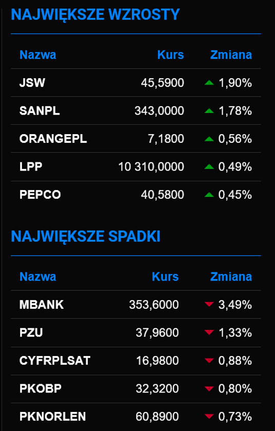 WIG20 powiększa przewagę