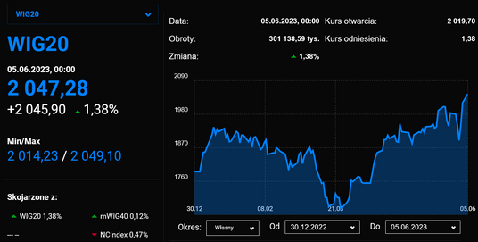 Początek sesji na warszawskim parkiecie może wypaść na plusach. - Perspektywy na dzisiejsze otwarcie w Warszawie są pozytywne – dobrą sesję mają za sobą indeksy amerykańskie, zwyżki notują także rynki azjatyckie. Poranne notowania kontraktów terminowych na główne europejskie indeksy wskazują nieznaczne dodatnie odchylenia. Pozytywnego rozwiązania doczekał się także problem podniesienia limitu zadłużenia USA – prezydent Joe Biden podpisał w sobotę ustawę o zawieszeniu limitu do 2025 roku - wskazują w komentarzu porannym analitycy BM Alior Banku.