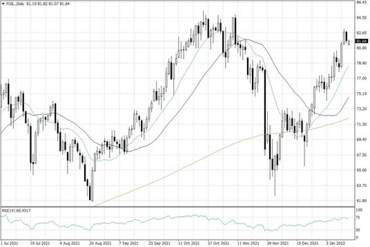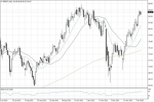 O ile techniczna sytuacja na rynku ropy naftowej sprzyja korekcie spadkowej, to inwestorzy wyczekują na konkretny impuls – bo póki co na rynku tym utrzymują się w miarę pozytywne nastroje, związane z brakiem istotnych lockdownów w wyniku wariantu Omikron oraz obawami o podaż ropy naftowej w niektórych krajach.