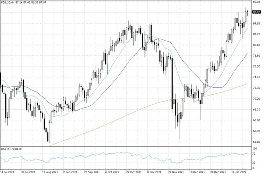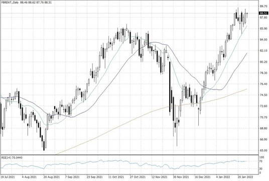 Pomijając kwestie geopolityczne, na rynku ropy naftowej nie mamy w zasadzie żadnych przełomowych informacji, które sprzyjałyby wzrostom cen ropy. Popandemiczne ożywienie gospodarcze na świecie stoi bowiem pod znakiem zapytania, zwłaszcza w kontekście planowanych podwyżek stóp procentowych w wielu krajach świata, z USA na czele. Także wczorajsze zapowiedzi możliwego podniesienia poziomu stóp procentowych przed Fed już w marcu br. sprzyjały wyhamowaniu zwyżek cen ropy ze względu na presję silnego amerykańskiego dolara.