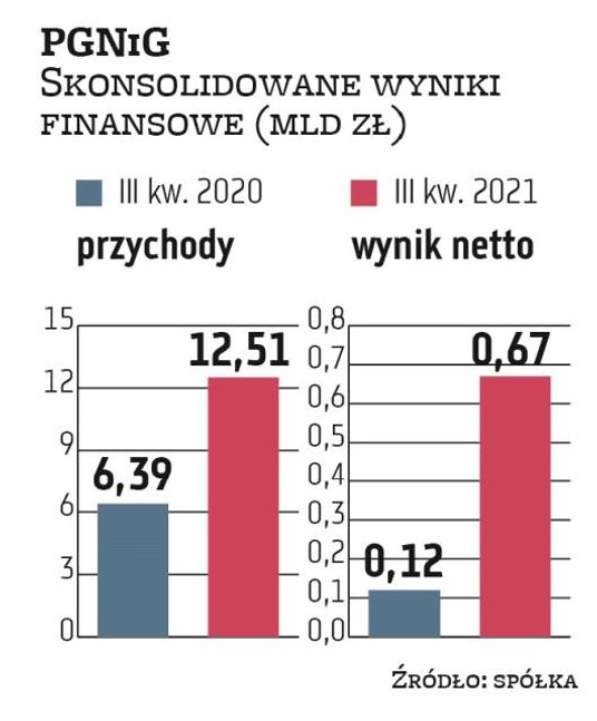 Końcówka roku powinna być dla grupy PGNiG lepsza niż rok temu. – W IV kwartale przede wszystkim spodziewam się bardzo dobrych wyników finansowych koncernu w biznesie wydobywczym. To nie tylko kwestia wysokich cen gazu i ropy, ale i wzrostu wydobycia w Norwegii – mówił Kamil Kliszcz, analityk BM mBanku. Zauważa, że pod koniec września PGNiG sfinalizowało zakup firmy Ineos E&P Norge. W rezultacie od tego czasu jego całościowe wydobycie wzrosło o około jedną trzecią. Wzrost wolumenów i taryf powinien też zaowocować poprawą wyników z dystrybucji gazu. Ponadto poprawy rezultatów można oczekiwać z działalności związanej z wytwarzaniem energii.