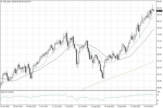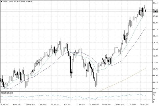 Na rynku ropy naftowej wczoraj dynamiczne zwyżki zostały skontrowane przez stronę podażową, a dzisiaj nadal utrzymuje się delikatna presja strony podażowej. Ceny ropy WTI pozostają jednak na razie istotnie powyżej poziomu 83 USD za baryłkę, zaś notowania ropy Brent – w okolicach 85 USD za baryłkę.