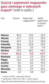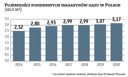 Pojemność podziemnych magazynów gazu ziemnego w Polsce wynosi obecnie 3,2 mld m sześc. To mało, zwłaszcza jeżeli porównać ją z możliwościami, jakie w tym zakresie mają inne państwa europejskie, w tym nasi sąsiedzi. Na Ukrainie pojemność magazynów sięga 28,2 mld m sześc., a w Niemczech 19,2 mld m sześc. Nawet znacznie mniejsze kraje, takie jak Czechy czy Słowacja, są w stanie (każdy z osobna) zgromadzić podobne ilości surowca co Polska. Jeszcze większe dysproporcje widać w regionie, gdy porówna się pojemności magazynowe z ilością zużywanego surowca. W ubiegłym roku zapotrzebowanie na gaz wyniosło nad Wisłą 21,6 mld m sześc. To oznacza, że jeśli w maksymalnym stopniu napełnimy posiadane magazyny, to zgromadzony w nich surowiec będzie stanowił ok. 15 proc. naszej rocznej konsumpcji. Dla porównania, w Niemczech jest to ponad 22 proc., w Czechach prawie 38 proc., na Słowacji przeszło 69 proc., a na Ukrainie aż 96 proc.