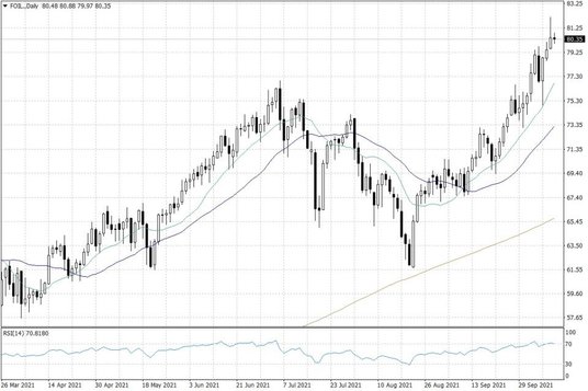 Fundamentalnie, zwyżkę cen ropy naftowej nadal wspiera ożywienie popytu na paliwa, związane z otwieraniem się niektórych gospodarek po lockdownach (zwłaszcza w Azji), jak również dynamiczna zwyżka cen pozostałych surowców energetycznych oraz obawy o ich zapasy w obliczu zbliżającej się zimy. Nie pomógł także fakt, że OPEC+ zdecydował się na utrzymanie stopniowego (a według niektórych innych państw – zbyt wolnego) tempa wzrostu produkcji ropy naftowej do końca bieżącego roku.