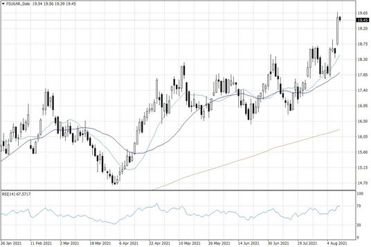Strona popytowa na rynku cukru jest silna już od wielu miesięcy. Niemniej, podczas wczorajszej sesji dała ona o sobie znać wyjątkowo dobitnie. Notowania cukru w USA rozpoczęły sesję od luki wzrostowej, a zakończyły ją na imponującym, 6-procentowym plusie. W rezultacie, cena cukru w USA dotarła do okolic 19,50-19,60 centów za funt. Dzisiaj utrzymuje się w rejonie wczorajszego zamknięcia. To najwyższe ceny cukru od marca 2017 roku, a więc już od ponad 4 lat.
