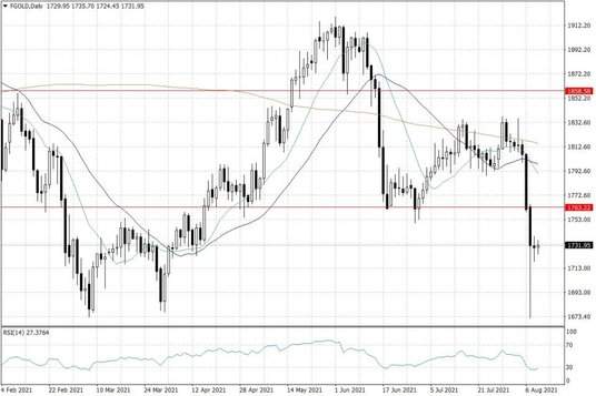 Dzisiaj kolejnym impulsem dla USD oraz, co za tym idzie, także złota, mogą być dane dotyczące inflacji w Stanach Zjednoczonych. W ostatnich miesiącach pojawiały się nadzwyczaj wysokie odczyty inflacji – więc jeśli i tym razem będziemy mieć do czynienia z wyższym od oczekiwań odczytem, to inwestorzy będą tym bardziej liczyć na rychłe rozpoczęcie taperingu QE w USA oraz na wzmożone rozmowy na temat szybszego terminu podwyżek stóp procentowych. Taki scenariusz oczywiście byłby dla złota niekorzystny. Natomiast potencjalnie niższy od oczekiwań odczyt mógłby trochę zrewidować obecne oczekiwania inwestorów, wyhamować wzrost wartości amerykańskiego dolara oraz zapewnić impuls do silniejszego odbicia cen złota.