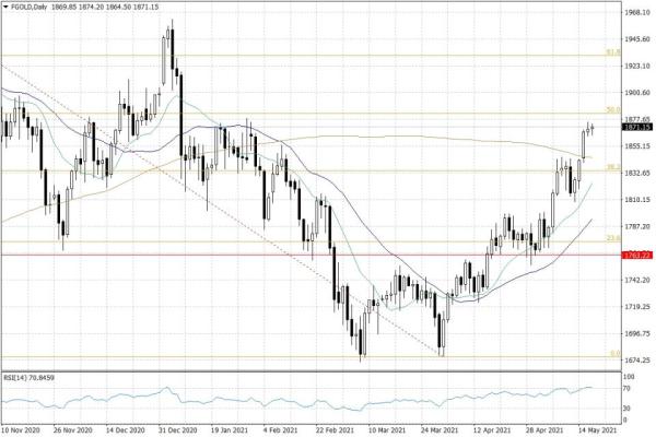 Po poniedziałkowej dynamicznej zwyżce, wczoraj notowania złota wzrosły już delikatnie. Dzisiaj rano ceny kruszcu kontynuują delikatny ruch w górę, oscylując tuż powyżej poziomu 1870 USD za uncję. To najwyższe poziomy notowań złota od stycznia bieżącego roku.