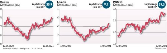 – O tym, czy przejecie Lotosu i PGNiG przez Orlen będzie korzystne dla akcjonariuszy poszczególnych spółek, będziemy mogli mówić, gdy poznamy parytety wymiany akcji. Obecnie wydaje się, że najbardziej korzystny będzie on dla udziałowców płockiego koncernu, gdyż w tym podmiocie – ze względu na stosunkowo mały udział Skarbu Państwa – może być najtrudniej przegłosować uchwały dotyczące połączenia – mówi Beata Szparaga-Waśniewska, analityk Ipopema Securities. Dodaje, że najłatwiej powinno być z uzyskaniem aprobaty uchwał o fuzji na walnym zgromadzeniu PGNiG. Wcześniej musi jednak pozytywną decyzję w sprawie koncentracji wydać UOKiK. Z kolei w przypadku Lotosu rynek oczekuje na informacje dotyczące pozyskania partnera lub partnerów biznesowych dla gdańskiej rafinerii i pozostałych aktywów, które muszą być zbyte w ramach wypełniania warunków zaradczych określonych przez Komisję Europejską.