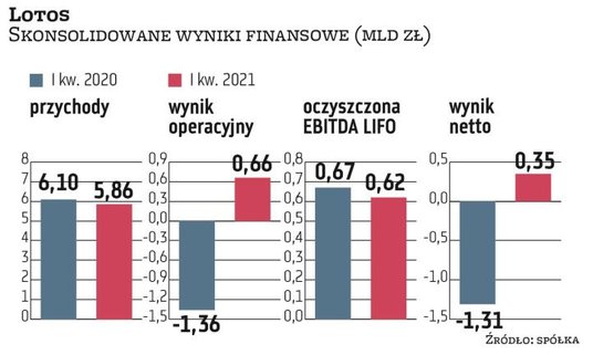 Mimo niekorzystnego otoczenia w I kwartale grupa zanotowała tylko kilkuprocentowy spadek zysków na działalności produkcyjnej i handlowej. Kluczowy wskaźnik, czyli oczyszczony zysk EBITDA LIFO wyniósł w tym czasie 444,7 mln zł. Osiągnięto go w dużym stopniu dzięki przyjęciu wyceny ropy po istotnie niższym koszcie jednostkowym, niż aktualny jej kurs na rynkach międzynarodowych. Z drugiej strony w rafinerii miał miejsce postój remontowy, co spowodowało spadek produkcji o jedną czwartą.