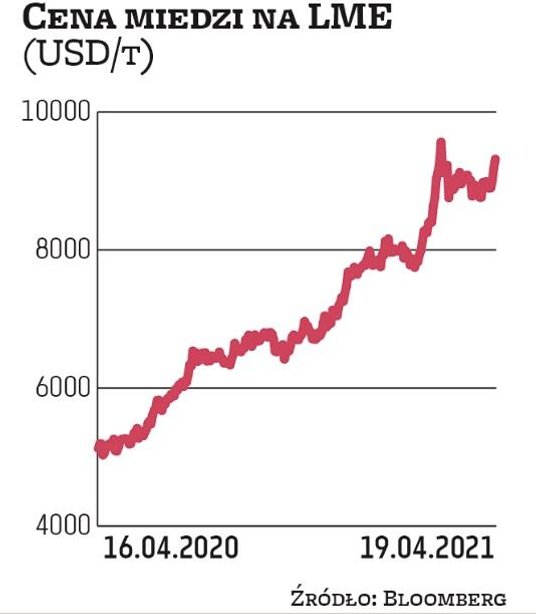 – W marcu mieliśmy do czynienia ze swego rodzaju korektą po bardzo silnym wzroście z lutego. Moim zdaniem w tym kwartale może dojść do ataku na 10 tys. USD za tonę – uważa Mateusz Namysł, analityk mBanku. – Miedź zyskiwała w tym roku na wartości ze względu na oczekiwania, że działania stymulacyjne wraz z coraz bardziej powszechnym dążeniem, albo przynajmniej zapowiedziami dążenia, do transformacji energetycznej w kolejnych latach w różnych obszarach gospodarczych przyniosą zwiększony popyt – dodaje. Popyt nie wzrośnie gwałtownie z dnia na dzień, ale transformacja będzie trwała latami, więc ta narracja może się utrzymywać przez dłuższy czas i wspierać notowania. Inwestorzy będą więc uważnie śledzić dane o zapasach surowca i sprawdzać, czy i w jakim stopniu popyt rzeczywiście przybiera na sile.
