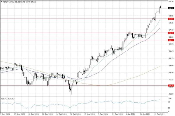 Zwyżki notowań ropy naftowej są napędzane przez mrozy w Teksasie, przyczyniające się do obniżenia produkcji ropy w USA, jak również przez limity wydobycia wprowadzone przez państwa OPEC+. Wszystko to prowadzi do spadku zapasów ropy naftowej na świecie, który w ostatnich tygodniach przyspieszył.