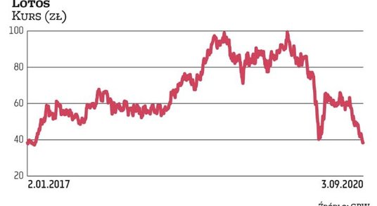 Podczas ostatnich sesji giełdowi inwestorzy wyjątkowo nisko wyceniali akcje Lotosu. W czwartek ich kurs mieścił się w dość wąskich widełkach 38–39 zł. Dzień wcześniej spadał nawet do 37,42 zł. Tak niskich cen walorów gdańskiego koncernu nie było nawet w marcu, podczas panicznej wyprzedaży spowodowanej rozprzestrzenianiem się pandemii koronawirusa i będących jej następstwem obaw o przyszłość polskiej i światowej gospodarki. Co więcej, ostatnio transakcje po tak niskim kursie jak obecnie zawierano ponad trzy i pół roku temu, czyli na początku 2017 r.