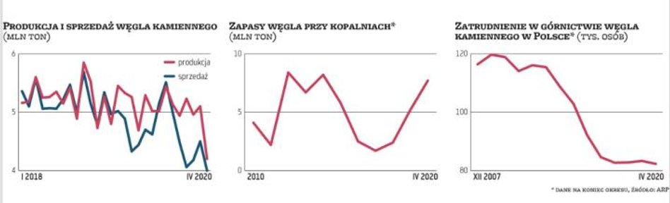 Istnieją jednak poważne obawy, że kopalnie po powrocie do pełnych mocy nie znajdą kupców na cały swój węgiel. Na przykopalnianych zwałach leży niemal 8 mln ton czarnego paliwa. Z powodu pandemii zapotrzebowanie na ten surowiec gwałtownie spadło. W maju krajowe elektrownie opalane węglem kamiennym wyprodukowały aż o 24 proc. mniej prądu niż przed rokiem. Nie ma jednoznacznych prognoz pokazujących, jak gospodarka odbudowywać się będzie po pandemii. Jeśli powoli – to zapotrzebowanie na węgiel również nie wróci szybko to poziomów sprzed kryzysu. Tym bardziej że surowiec ten jeszcze przed pojawieniem się koronawirusa wypychany był przez gaz i zyskujące na znaczeniu odnawialne źródła energii.