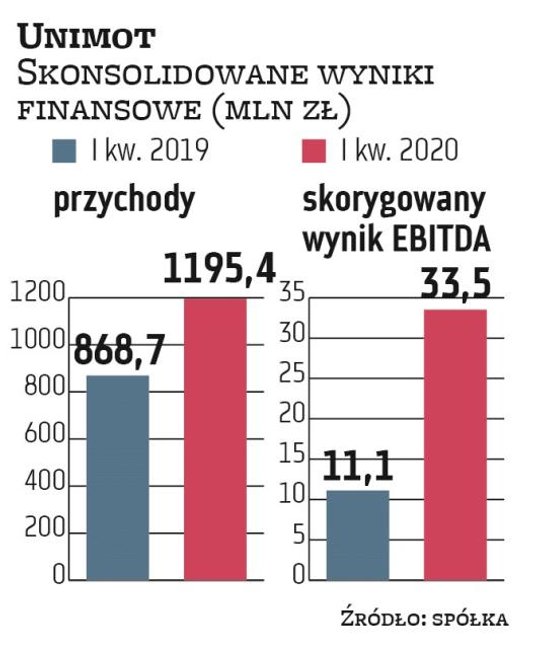 Dziś podstawowym biznesem Unimotu jest handel olejem napędowym i biopaliwami, który zapewnia grupie zdecydowaną większość przychodów i zysków. Od pewnego czasu zarząd dąży jednak do istotnej dywersyfikacji prowadzonej działalności. Z tego też powodu udział pozostałych biznesów systematycznie rośnie. Ostatnio grupa weszła w takie obszary działalności jak handel produktami asfaltowymi i ropą naftową. Ponadto Unimot cały czas rozwija sieć stacji paliw Avia w Polsce i na Ukrainie. W I kwartale podstawowy wskaźnik grupy, czyli skorygowany zysk EBITDA, wyniósł 33,5 mln zł, co było rezultatem ponaddwukrotnie lepszym niż rok temu i najwyższym w historii firmy. TRF