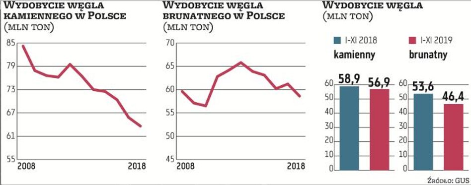Spadająca produkcja, rosnące zapasy, ale też słabnący import z zagranicy – tak wyglądała sytuacja na polskim rynku węgla w minionym roku. Rok 2020 przyniesie firmom wydobywczym kolejne wyzwania. Choć polski rząd zapowiada, że nie zrezygnuje szybko z wytwarzania energii z czarnego paliwa, to narrację tę – z powodu wyraźnie antywęglowej unijnej polityki klimatycznej – coraz trudniej będzie utrzymać. W dalszej perspektywie analitycy przewidują systematyczne kurczenie się krajowego rynku węgla.