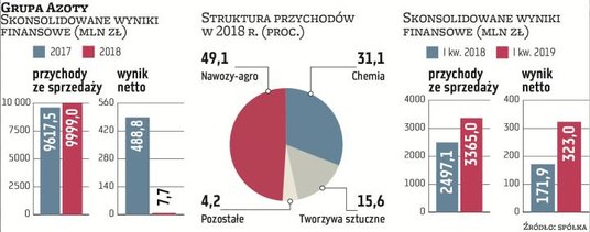 Dodaje, że nie bez znaczenia były też warunki pogodowe, wspierające spadek cen gazu i umożliwiające rozpoczęcie sezonu sprzedażowego nawozów zgodnie z planem. Ponadto w I kwartale realizowane były podwyżki cen wybranych nawozów, o których firma informowała. – W segmencie tworzyw spodziewane z końcem 2018 r. spowolnienie na rynkach kluczowych produktów w rzeczywistości miało mniejszą dynamikę, przekładając się na wyniki wyższe od oczekiwanych. Średnie rynkowe ceny w większości segmentów produktowych, w tym przede wszystkim produktów nawozowych, kształtowały się na poziomie wyższym niż w analogicznym okresie rok temu, przekładając się na wyższy poziom wyniku EBITDA – tłumaczy Dziekański.