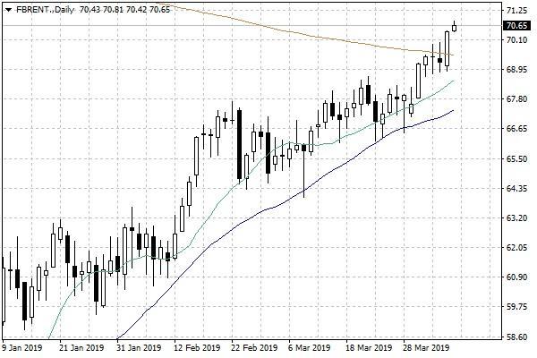 Cena ropy naftowej Brent powyżej 70 USD za baryłkę.