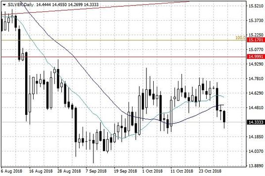 Ostatnie tygodnie na rynku srebra nie przynoszą istotnych ruchów cenowych. Podczas gdy notowania złota zanotowały wyraźniejszy ruch w górę w pierwszej połowie października, cena srebra radziła sobie gorzej. W rezultacie, notowania srebra poruszały się przez ostatni miesiąc w konsolidacji, w rejonie 14,30-14,80 USD za uncję.