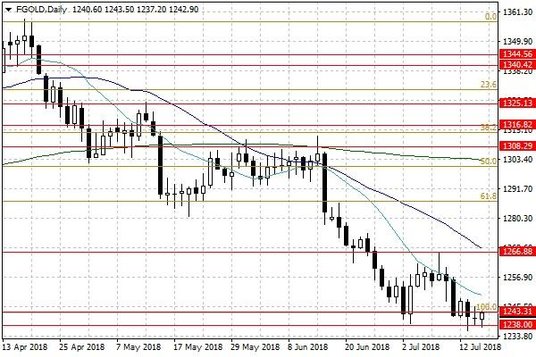 Notowania złota w poprzednim tygodniu dynamicznie spadły, schodząc do okolic 1240 USD za uncję. Na początku bieżącego tygodnia notowania kruszcu delikatnie odreagowują tę zniżkę, jednak pozostają pod wyraźną presją podaży.