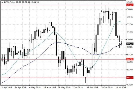Miniony tydzień zakończył się wyraźną zniżką notowań ropy naftowej. Cena amerykańskiej ropy gatunku WTI zeszła poniżej bariery 70 USD za baryłkę i dzisiaj rano nadal utrzymuje się w rejonie piątkowego zamknięcia. Z kolei notowania ropy Brent w czwartek i piątek delikatnie wzrosły, jednak nie na tyle, aby zniwelować gwałtowną środową zniżkę. W rezultacie, cena tego typu ropy znajduje się poniżej poziomu 75 USD za baryłkę.