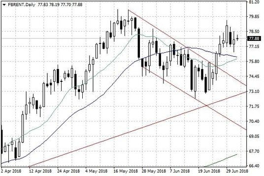 Bieżący tydzień na rynku ropy naftowej nie przynosi istotnych zmian, przynajmniej na razie. Aktywność inwestorów jest skutecznie ograniczana przez przygaszony handel związany z dzisiejszym Dniem Niepodległości w Stanach Zjednoczonych, wobec którego wczorajsza sesja w USA była skrócona, a dzisiejsza się nie odbędzie. W rezultacie, pierwsza połowa trwającego tygodnia na rynku ropy naftowej upłynęła pod znakiem konsolidacji na wykresie ropy Brent w okolicach poziomu 78 USD za baryłkę, a także wyhamowania wzrostów cen ropy WTI tuż powyżej poziomu 74 USD za baryłkę.