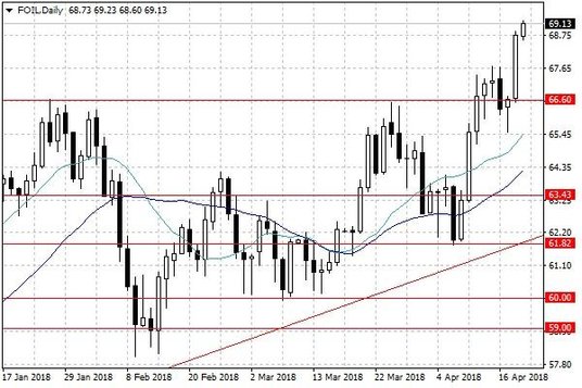 Wczorajsza sesja była niezwykle interesująca na rynku ropy naftowej. Cena tego surowca gatunku WTI w Stanach Zjednoczonych zwyżkowała aż o 3%, docierając do okolic 68,50 USD za baryłkę – a tym samym, wybijając się na nowe tegoroczne maksima. Dzisiaj rano cena ropy WTI przekroczyła już poziom 69 USD za baryłkę, podczas gdy ostatnio tak wysokie ceny ropy naftowej były obserwowane na przełomie listopada i grudnia 2014 roku.