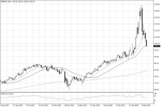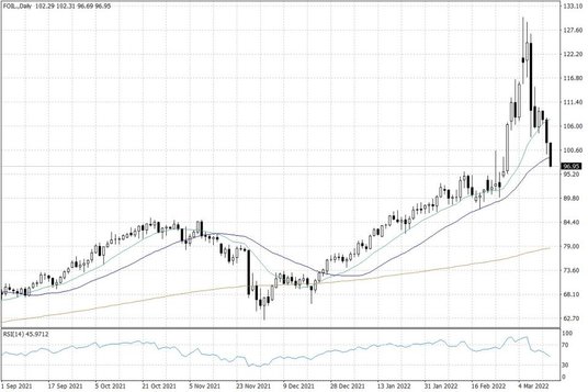 Powyższe czynniki sprawiły, że dzisiaj rano cena ropy naftowej znajduje się już na najniższych poziomach od 1 marca, czyli od dwóch tygodni. W przypadku ropy naftowej Brent, obserwujemy zejście notowań do okolic 100 USD za baryłkę, natomiast ropa WTI spadła już do poziomów dwucyfrowych i wycen poniżej 97 USD za baryłkę.