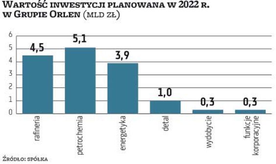 W latach 2020–2030 łączna wartość inwestycji koncernu ma wynieść ok. 140 mld zł. Na 2022 rok zaplanowano rekordową kwotę 15,2 mld zł. Najwięcej pieniędzy koncern chce zainwestować w rozwój obszaru petrochemicznego – będzie to 5,1 mld zł. Za tę kwotę zamierza m.in. kontynuować projekty rozbudowy zdolności produkcyjnych olefin w Płocku i nawozów we Włocławku.