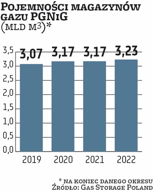 Dziś w magazynie w Wierzchowicach można tworzyć zapasy surowca sięgające 1,3 mld m sześc. Dzięki planowanej rozbudowie wzrosną one do 2,1 mld m sześc. Tym samym pojemność wszystkich magazynów gazu należących do PGNiG, i jednocześnie jedynych, jakie funkcjonują w naszym kraju, wzrośnie z obecnych 3,23 mld m sześc. do 4,03 mld m sześc. To dużo, zważywszy, że krajowe zużycie błękitnego paliwa wynosi około 20 mld m sześc. rocznie.