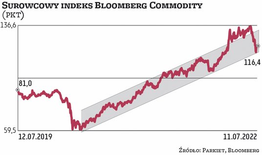 Surowcowy indeks Bloomberg Commodity, który jeszcze miesiąc temu próbował wyjść na dziewięcioletni szczyt, zaliczył silną przecenę. Choć od połowy ubiegłego tygodnia odrabia straty, to w środę znajdował się już nieco ponad 20 proc. poniżej czerwcowego szczytu, co oznacza spełnienie definicji bessy.