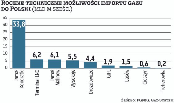 Budowa gazociągu Baltic Pipe, który ma połączyć nasz kraj ze złożami w Norwegii, to jeden ze sztandarowych projektów w zakresie bezpieczeństwa energetycznego Polski. Dziś jego znaczenie jest jeszcze większe, niż mogło się to wydawać kilka kwartałów temu, zwłaszcza wziąwszy pod uwagę, że od końca kwietnia Gazprom postanowił jednostronnie wstrzymać przesył surowca nad Wisłę. W efekcie w tym roku ze Wschodu otrzymaliśmy tylko 3 mld m sześc. błękitnego paliwa, i zapewne ten wolumen już się nie zmieni. Tymczasem zgodnie z kontraktem jamalskim do końca tego roku dostawy powinny sięgać do 10,2 mld m sześc. rocznie. W 2022 r. pojawia się zatem deficyt 7 mld m sześc., czyli w wysokości około jednej trzeciej naszego rocznego zużycia. PGNiG stara się zlikwidować deficyt głównie poprzez zwiększanie importu z Niemiec i gazu LNG. Nie jest to jednak łatwe, wziąwszy pod uwagę, że globalny popyt istotnie przewyższa podaż.