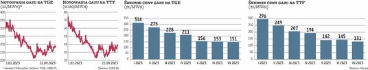 Przy okazji publikacji wyników za II kwartał koncern informował, że w całym 2023 r. oczekuje średniej cen gazu wynoszącej około 200 zł. Dla porównania na TGE średni kurs w transakcjach natychmiastowych wynosił 274 zł w I kwartale i 173 zł w II kwartale. Od dłuższego czasu kursy te mają wpływ jedynie na odbiorców biznesowych. Gospodarstwa domowe i odbiorcy wrażliwi płacą za dostawy drugi rok z rzędu według stałej zamrożonej taryfy wynoszącej 200,17 zł za MWh (do tego dochodzą opłata abonamentowa i taryfa dystrybucyjna). Koncern pytany, czy nadal powinna być ona zamrożona stwierdza jedynie, że dostosuje się do wszelkich obowiązujących w tym zakresie regulacji.