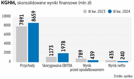 KGHM po trzech kwartałach tego roku przeznaczył na inwestycje 2,52 mld zł, co oznaczało ich wzrost o 16 proc. Najwięcej pieniędzy spółka przeznaczyła na rozbudowę infrastruktury, poprawę wydajności oraz zwiększenie bezpieczeństwa operacyjnego, m.in. poprzez modernizację hut i unowocześnienie zakładów górniczych. Ponadto firmy należące do grupy realizują projekty eksploracyjne w Polsce w zakresie poszukiwania i rozpoznawania złóż rud miedzi oraz rozwojowe projekty w aktywach zagranicznych.