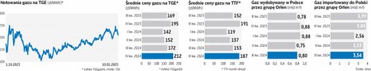 Orlen to nie tylko kluczowy dostawca gazu do odbiorców w Polsce, ale również największy jego konsument. Ile surowca zużywa na własne potrzeby ani czy w tym roku mogą tu nastąpić jakieś zmiany, nie podaje. Informuje jedynie o sprzedaży wewnątrz grupy i poza grupą. W III kwartale ubiegłego roku było to odpowiednio 5,1 mld m sześc., i 2,5 mld m sześc., a rok wcześniej 4,9 mld m sześc. i 3,1 mld m sześc. Jednocześnie koncern przyznaje, że ceny błękitnego paliwa mają zasadniczy wpływ na wyniki biznesu wydobywczego (63 proc. produkcji węglowodorów w 2023 r. stanowiła produkcja tego surowca) oraz biznesu gazu (ceny mają wpływ m.in. na poziom marż ze sprzedaży i wolumeny dystrybucji). „Ceny gazu oddziałują również na inne segmenty, takie jak: rafineria (gaz jest tam wykorzystywany do produkcji ciepła na potrzeby procesów produkcyjnych), petrochemia (gaz wykorzystywany do produkcji nawozów) oraz energetyka (gaz wykorzystywany w elektrociepłowniach do wytwarzania ciepła i energii elektrycznej – przeznaczonych do sprzedaży zewnętrznej bądź na potrzeby własne)” – przyznaje Orlen.