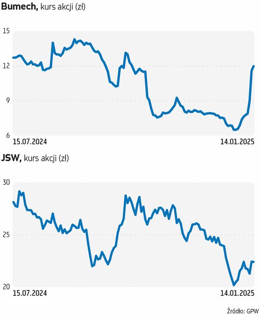 Czynników, które determinowały ostatnie wzrosty spółek górniczych, a zwłaszcza Bumechu (od początku roku spółka rosła o ponad 75 proc.), jest kilka, choć żaden nie dotyczy bezpośrednio tychże spółek ani podjętych przez zarządy tych firm decyzji. – Nie ma jednej bezpośredniej przesłanki. Musimy pamiętać, że JSW, Bumech i Bogdanka to spółki podatne na wysokie ryzyko spekulacyjne. Poprzedni rok dla firm górniczych nie był udany. Dodatkowo podejrzewam, że indywidualni inwestorzy w końcówce grudnia realizowali stratę podatkową – wskazuje Jakub Szkopek, analityk Erste Securities. Ekspert podkreśla, że akcje Bumechu są jak mało które podatne na spekulacje rynkowe. – W przypadku tej spółki nawet na pozór nieistotna informacja może wzbudzić spory ruch. Nie widzę jednak obecnie przesłanek po stronie działań zarządu spółki, aby móc stwierdzić, że perspektywy rynkowe i wewnątrzspółkowe poprawiają się – mówi.