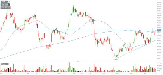 Na wykresie kursu akcji KGHM wciąż słychać echo listopadowego tąpnięcia i wyrysowanej wówczas z hukiem luki bessy. W konsekwencji kurs dotarł nawet do około 115 zł, ale tu średnioterminowy trend odwrócił się. W lutym popyt zdołał niemal w całości domknąć wspomnianą lukę bessy. Jedna z sesji zakończyła się blisko 6-proc. wzrostem, choć w jej trakcie kurs był znacznie wyżej. Popyt napotkał mocno okopanych sprzedających, w efekcie czego nad dzienną świecą wyrysował się długi cień.