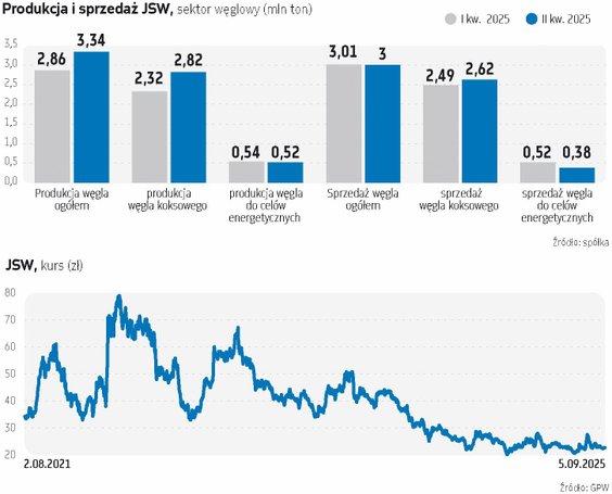 Światełkiem w tunelu dla JSW w czasie trudnych ostatnich miesięcy było rosnące wydobycie. W okresie styczeń–lipiec 2025 r. spółka zrealizowała 103,3 proc. założonej produkcji, osiągając 7,43 mln ton. To efekt przyspieszonego uruchamiania nowych ścian wydobywczych, lepszej organizacji pracy i motywacyjnych rozwiązań wprowadzonych w ramach Planu Strategicznej Transformacji, czyli tzw. planu naprawczego. Lekko drgnęły także ceny węgla koksującego a lipiec był okresem ich odbicia. Węgiel Premium Low Vol podrożał z 173,50 dol./t na początku lipca, do 183,20 dol./t na początku sierpnia, a koks chiński (64/62 CSR) z 179 dol./t do 204 dol./t. Choć średnie ceny były nieco niższe od prognoz w planie naprawczym, spółka liczy na dalsze pozytywne zmiany w drugiej połowie roku, wspierane rosnącym popytem na rynkach azjatyckich.