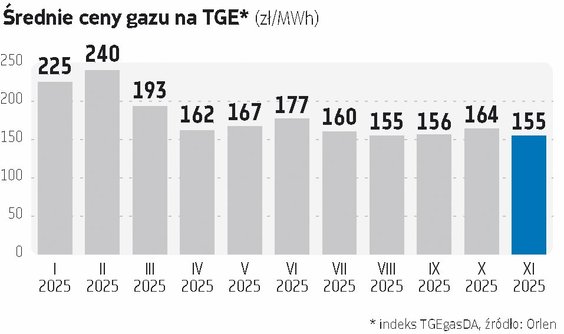 Orlen, dominujący dostawca gazu ziemnego w Polsce, uważa, że ceny tego surowca na europejskim rynku reagują spadkowo na bliskie zakończenie prac konserwacyjnych przy norweskiej infrastrukturze wydobywczej oraz wysoki poziom regazyfikacji w europejskich terminalach LNG. „Jest on wyższy o ponad 40 proc. niż rok temu dla października i listopada, dzięki niskiemu popytowi na LNG rynku azjatyckiego. Mniejsza konkurencja o dostawy z Azją sprzyja niższym cenom w naszym regionie” – twierdzi zespół prasowy Orlenu. W jego ocenie, nie bez znaczenia pozostaje również wojna w Ukrainie oraz nadzieje na jej zakończenie, co skutkowałoby zmniejszaniem tzw. premii za ryzyko i sprzyjałoby spadkowi cen.