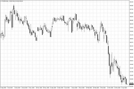 Zaledwie kilka dni po porozumieniu producentów ropy naftowej, notowania tego surowca osunęły się do okolic tegorocznych minimów cenowych. W przypadku ropy WTI, oznacza to zejście z powrotem do okolic psychologicznej bariery na poziomie 20 USD za baryłkę. W przypadku ropy Brent, strona popytowa wykazuje większą siłę, a notowania poruszają się poniżej 30 USD za baryłkę, wciąż kilka dolarów wyżej niż minima z początku kwietnia (około 25 USD za baryłkę).