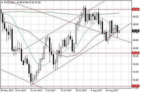 Ożywienie strony popytowej pojawiło się wraz z zagrożeniem pogodowym. Huragan Harvey, który pojawił się nad Zatoką Meksykańską, od wczoraj wyraźnie przybrał na sile i zaczął w istotny sposób zagrażać terenom przybrzeżnym w amerykańskim Stanie Teksas. Najbardziej zagrożone są tereny między miejscowościami Houston a Corpus Christi, a jest to rejon, w którym usytuowanych jest wiele rafinerii, magazynów ropy naftowej, a także punktów wydobycia ropy naftowej. Część z nich wstrzymała wczoraj działalność w oczekiwaniu na huragan, a siła wiatru budzi obawy o to, czy przerwa ta nie okaże się długa ze względu na potencjalne zniszczenia. Te informacje stanowią obecnie wsparcie dla cen ropy naftowej, aczkolwiek warto mieć na uwadze to, że sytuacja może się dynamicznie zmieniać w najbliższych godzinach.