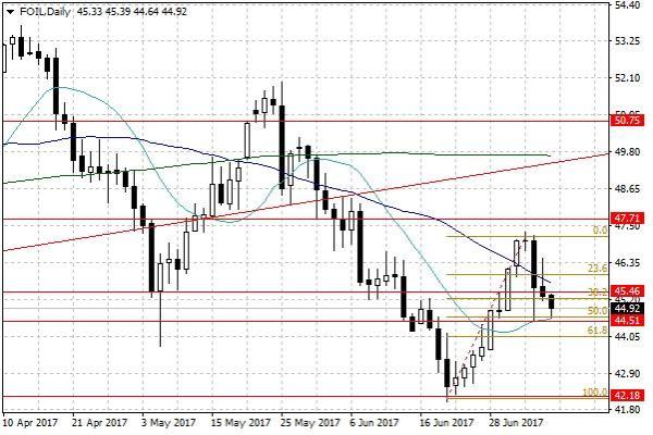 Z technicznego punktu widzenia, rejon 44,50-45,00 USD za baryłkę to ważny poziom wsparcia dla notowań ropy WTI. Jeśli jego dolna granica zostanie przekroczona w dół, to najprawdopodobniej cena ropy zejdzie do poziomu tegorocznego minimum.