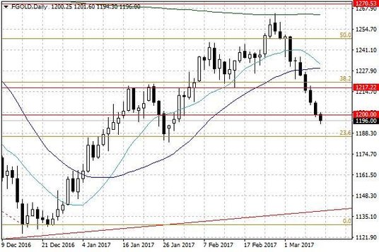 Cena złota poniżej poziomu 1200 USD za uncję.