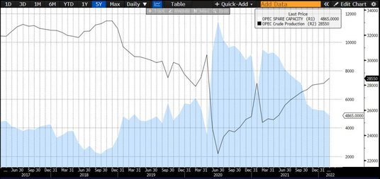 Rosja produkuje ok. 10 mbd, z czego eksportuje połowę w postaci surowej ropy oraz niecałe 3 mbd w postaci produktów ropopochodnych. W sumie to ok. 8% całej globalnej podaży Rynek ropy naftowej jak i innych surowców musi pozostawać we względnym zbilansowaniu, aby nie było sytuacji cenowych szoków podażowych czy popytowych Rosja eksportuje ok. 2 mbd za pomocą ropociągów oraz 6 mbd za pomocą tankowców Do krajów UE płynie w sumie ok. 4 mln brk, z czego mniej więcej 1 mbd za pomocą ropociągów Firmy same nakładają na siebie sankcje, nie kupując rosyjskiej ropy na rynku spot, co oznacza, że 3 mln brk na dzień może być zamrożone na dłuższy czas Patrząc historycznie byłby to 5 w historii największy szok podażowy na rynku ropy naftowej, wciąż jednak mniejszy, niż to co działo się na początku lat 90, kiedy Irak zaatakował Kuwejt Nie mamy jednak do czynienia z szokiem popytowym – ten nie powrócił jeszcze do poziomów sprzed Covida Świat, a w szczególności Europa będzie starać się ograniczyć zużycie ropy i szukać innych źródeł Sytuacja jest inna niż szok popytowy, który miał miejsce w latach 2007-2008, ale tamten czas też może nas wiele nauczyć pod względem kluczowego zagadnienia jakim jest destrukcja popytu. To właśnie ten termin jest kluczowy pod względem tego, ile maksymalnie możemy płacić za ropę.
