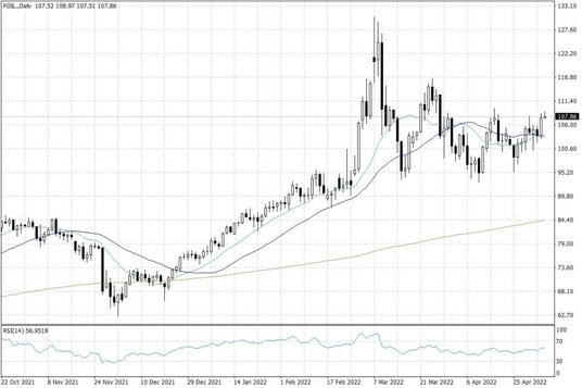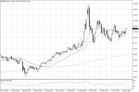 Z fundamentalnego punktu widzenia, negatywnym akcentem dla cen ropy naftowej były wczorajsze dane amerykańskiego Departamentu Energii, pokazujące ubiegłotygodniowy wzrost zapasów ropy w USA. Niemniej, inwestorzy w dużo większym stopniu skupiają się na zapowiedziach wygaszenia importu rosyjskiej ropy naftowej i produktów ropopochodnych do Unii Europejskiej. Wczorajsza propozycja zakłada stopniowe wycofywanie się UE z kupowania rosyjskiej ropy na przestrzeni najbliższego pół roku.