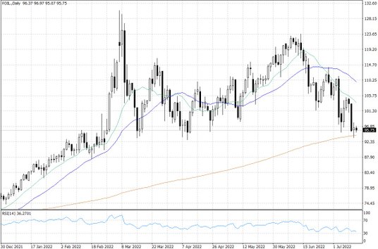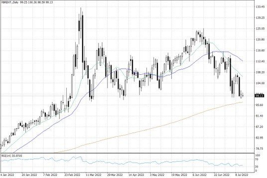 Po dynamicznym spadku notowań ropy naftowej podczas wtorkowej sesji, cena tego surowca ustabilizowała się, jednak pozostała poniżej poziomu 100 USD za baryłkę. Tym samym, coraz wyraźniej na rynku ropy dają się odczuć negatywne nastroje, powiązane z obawami recesji i spadku popytu na paliwa na świecie.