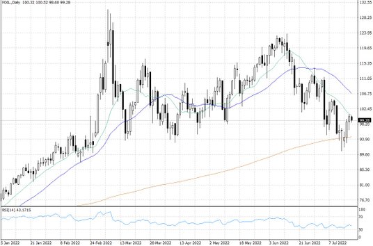 Po wzrostowym początku tygodnia na rynku ropy naftowej, notowania tego surowca dzisiaj rano oddają część zwyżek. Cena ropy WTI tym samym porusza się tuż poniżej poziomu 100 USD za baryłkę, a notowania ropy Brent – o kilka dolarów wyżej, w okolicy 105 USD za baryłkę. Różnica w cenie na korzyść europejskiego surowca ma uzasadnienie fundamentalne: w Europie obawy związane z bezpieczeństwem energetycznym są obecnie największe ze względu na wprowadzone sankcje na Rosję i problemy z dostawami różnych surowców energetycznych.