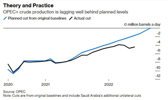 Co więcej, OPEC+ wg zewnętrznych źródeł nie pokrywa celu produkcyjnego i obecnie ze strony największej grupy producentów na świecie może brakować nawet 4 mln baryłek na dzień.