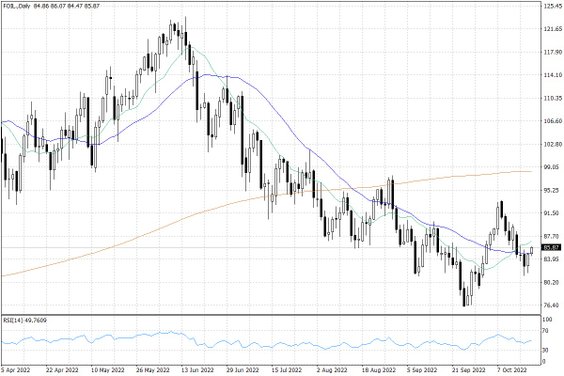 Notowania ropy naftowej wczoraj nadrobiły część strat z wcześniejszych dni. Cena ropy WTI powróciła ponad poziom 85 USD za baryłkę, a notowania ropy Brent dotarły znów do okolic 93 USD za baryłkę. Zwyżka ta wpisuje się w nerwowy brak wyraźnego kierunku cen ropy w ostatnich dniach i wyczekiwanie inwestorów na nowe impulsy – o ile bowiem średnioterminowy trend pozostaje spadkowy, to w ostatnim czasie zachwiały nim informacje o cięciu limitów produkcji ropy przez kraje OPEC+.