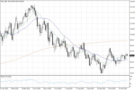 W kwestii podaży warto zwrócić uwagę na sytuację w krajach będących głównymi producentami ropy naftowej. Po pierwsze, zapasy ropy naftowej w USA w poprzednim tygodniu znacząco spadły, a firmy z branży łupkowej zapowiadają coraz mniejszą dynamikę wydobycia na niektórych polach naftowych. Po drugie, wielkimi krokami zbliża się wstrzymanie importu ropy z Rosji do UE (od 5 grudnia, z niewielkimi wyjątkami).