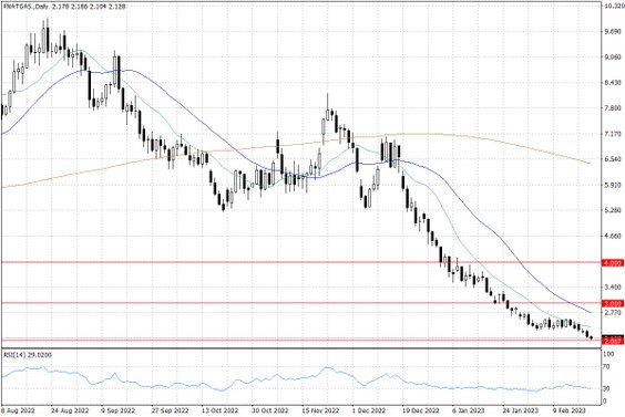 Po niezwykle burzliwym 2022 roku, bieżący rok na rynku gazu ziemnego rozpoczął się od spokojnych zniżek. O ile jeszcze w Europie sytuacja na tym rynku mimo wszystko pozostaje napięta za sprawą niepewności wokół konfliktu na Ukrainie, to w Stanach Zjednoczonych na rynku tym dominują spadki. Notowania gazu ziemnego w USA obecnie poruszają się w okolicach 2 USD za mln BTU, a dzisiaj przed otwarciem sesji kontrakty na gaz w tym kraju na chwilę nawet spadły poniżej tego poziomu – po raz pierwszy od września 2020 roku. Oznacza to, że od początku bieżącego roku cena gazu w Stanach Zjednoczonych spadła już o około 55%.